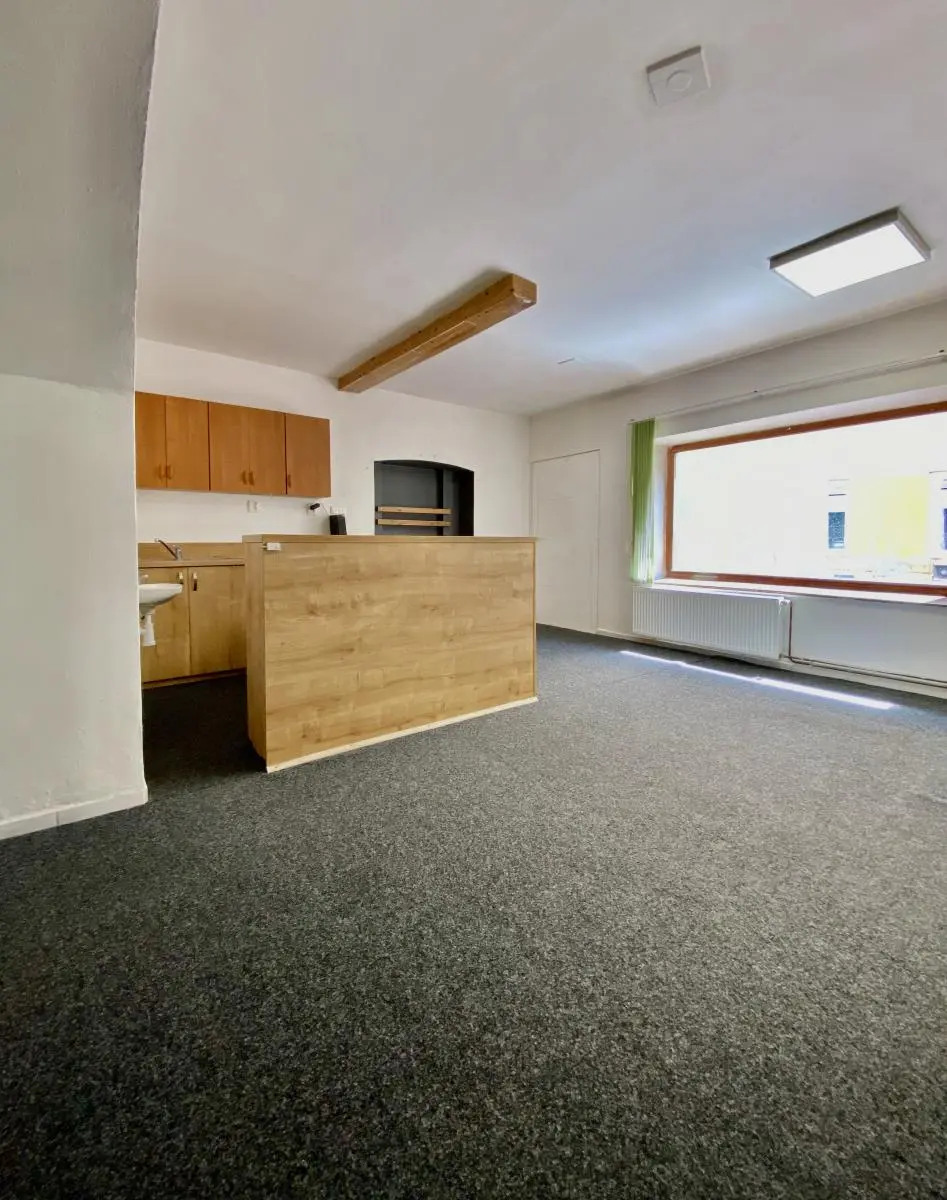 Stav: nově vymalováno, štukové omítky, dlažba, zánovní rozvod vytápění, LED osvětlení, zděný sprchový kout, zánovní kuchyňská linka s barem, výloha pro reklamu
