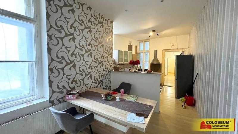 Nabízíme pronájem světlého a prostorného bytu 3+1 o ploše 103,9 m² ve 3. patře historického domu na rohu Masarykovy ulice a Zelného trhu v centru Brna. Byt tvoří předsíň s chodbou, velká kuchyně s komorou, tři neprůchozí pokoje (dva orientované do Masarykovy ulice, jeden do dvora), koupelna s vanou a WC a samostatné druhé WC. K bytu náleží také malý balkon do dvora, který však není možné z bezpečnostních důvodů využívat.
