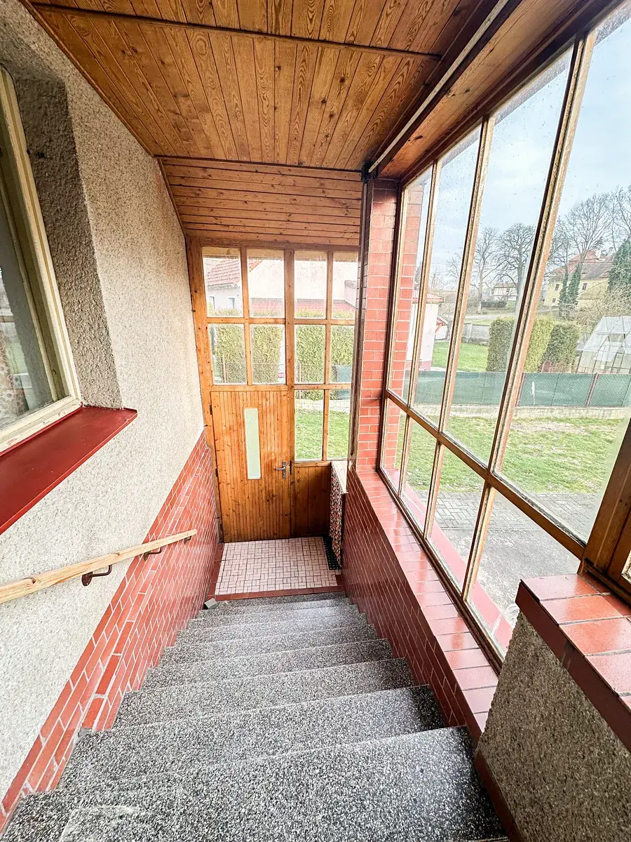 Pozemek: - garáž až pro dvě auta – dvůr – velká zahrada, kde je možné i například nainstalovat bazén – venkovní kůlna a menší výběh podél boční strany domu, který je možné použít kupříkladu k chování slepiček
