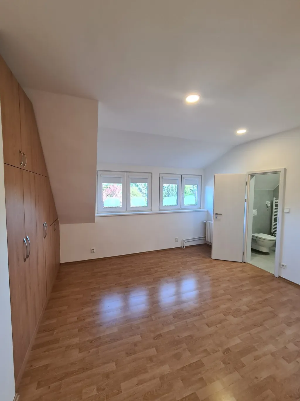 Nabízíme k pronájmu samostatně stojící rodinný dům (6+1) s udržovanou okrasnou zahradou s automatickým zavlažovacím systémem v blízkosti Průhonického parku. Nezařízený dům s obytnou plochou 350 m2 nabízí v přízemí kompletně vybavenou kuchyň (myčka nádobí, elektrický sporák se sklokeramickou deskou, odsavač par, lednice s mrazákem), jídelnu, prostorný obývací pokoj s krbem (53 m2) se vstupem na terasu s venkovním grilem, 1 ložnici, 1 koupelnu s vanou, sprchou, dvěma umyvadly, toaletou a bidetem, samostatnou toaletu a vstupní předsíň s vestavěnou skříní. V horním patře jsou 4 ložnice, samostatná šatna, vestavné skříně, 1 koupelna s vanou, sprchovým koutem a umyvadlem, 1 koupelna s umyvadlem, sprchou a toaletou. V suteréne domu je 1 místnost s možností využití jako hostovský pokoj nebo hobby místnost, samostatná prádelna, sauna s odpočívárnou a sprchovým koutem, sklad a technické zázemí. V suterénu je garážové stání pro 1 auto a vedle domu je druhá garáž. K vybavení domu patří elektrické vytápění, telefonní linka, alarm s možností napojení na policii, rozvody pro TV/SAT. Na podlahách jsou v pokojích parkety, v ostatních místnostech dlažba. Dům se nachází v příjemném a klidném prostředí v uzavřeném areálu s relaxačním centrem v centru obce, jen 100 m chůze od náměstí s mnoha restauracemi, kavárnami a obchody a vstupu do Průhonického parku. Hlavní výhodou této lokality je snadná dostupnost do centra města a pohodlné bydlení. V blízkosti je nájezd na dálnici D1 směr Praha/Brno, dobrá dostupnost autem nebo autobusem do mezinárodních škol. Průhonice patří k velmi oblíbeným a vyhledávaným lokalitám, vhodným zejména pro rodiny s dětmi.