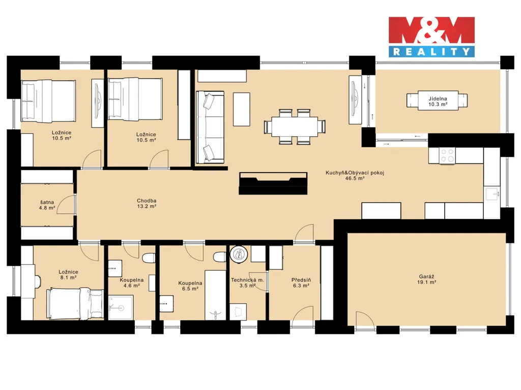 Prodej novostavby RD v Suchdole nad Lužnicí. Dům byl zkolaudován v roce 2019 a nachází se v klidné části. města. Velikostně je to 4 + kk o podlahové ploše 114 m2 s dvěma koupelnami, garáží a zasklenou terasou (10 m2). Na střeše je 25 solárních panelů, které slouží k podlahovému vytápění (21 ks) a ohřevu vody (4 ks). Díky úložným a virtuálním bateriím jsou nízké měsíční náklady. V obývacím pokoji se nachází krbová kamna, která vytopí celý objekt. Střecha je z vazníků a střešních tašek BRAMAC. Na pozemku se nachází malý zahradní domek. Zahrada je velmi dobře udržovaná a nachází se zde i několik ovocných stromů. Celková plocha pozemku činí 773 m², užitná plocha domu je 123 m².V Suchdolu nad Lužnicí je veškerá občanská vybavenost. Ideální místo pro cykloturistiku, houbaření, koupání v blízkých pískovnách, rybaření. Doporučuji prohlídku.