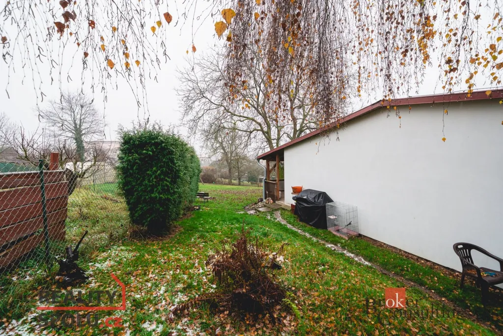 K domu přiléhá dřevěná pergola, ideální pro letní posezení, grilování či relaxaci. Celý pozemek o rozloze 1 522 m² poskytuje dostatek soukromí, zeleně a prostoru pro rodinné aktivity, zahradu či volnočasové využití.