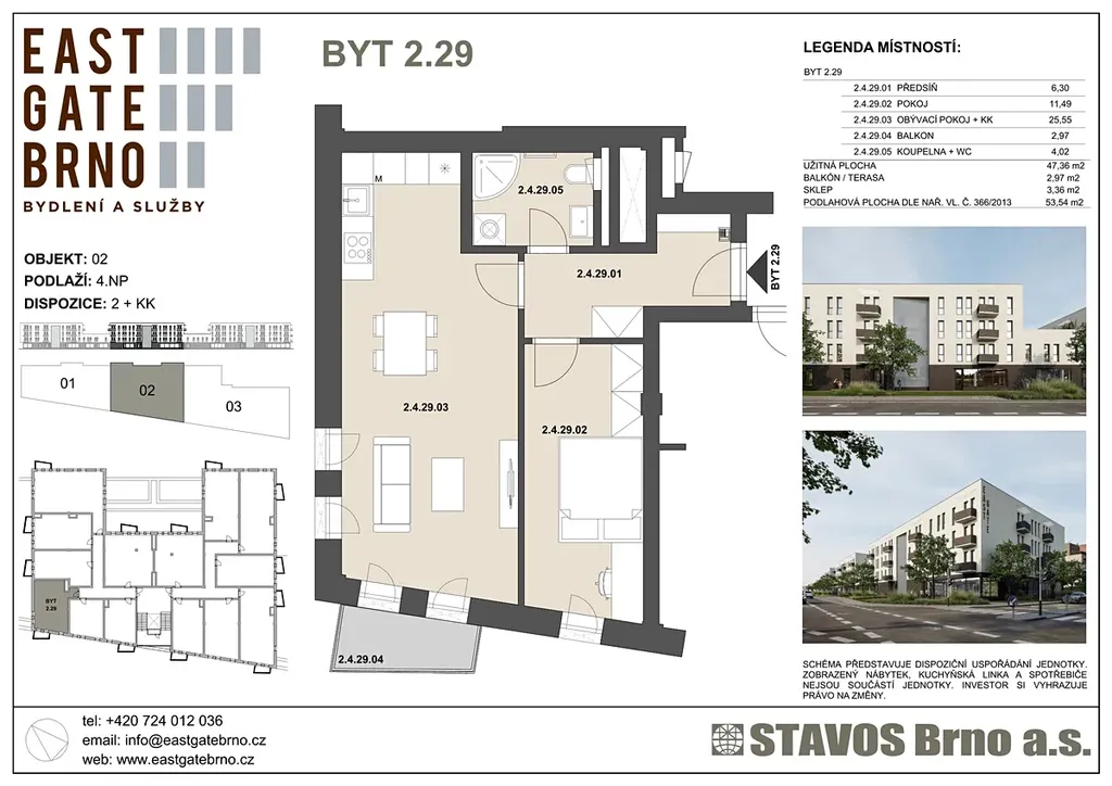 Nabízíme k prodeji moderní byt 2+kk v Brně- Slatině. Tento byt je součástí nově budovaného komplexu EASTGATE Brno.