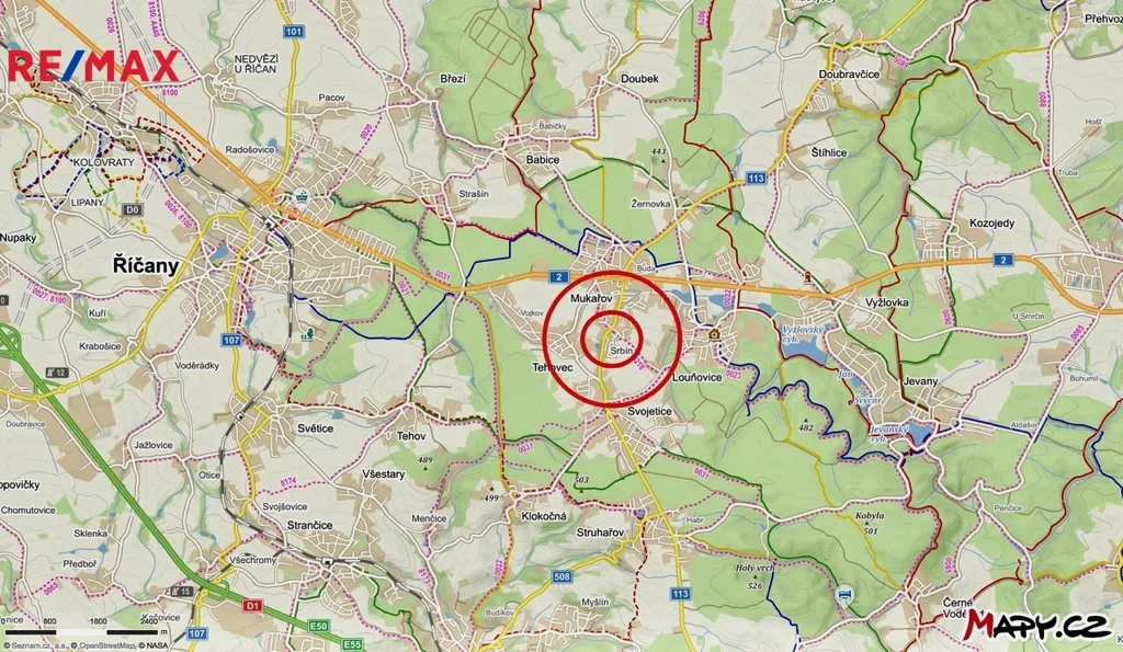 Dopravní dostupnost: Praha 21 km metro A i C, vlak Mnichovice i Říčany 8 km, Kostelec nad Černými lesy 8 km, vlak Úvaly 14 km.