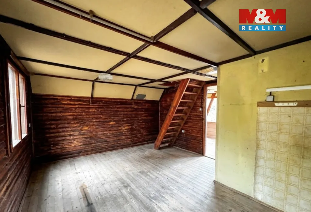 Na žulových základech o 33 m² stojí dřevěná chata s patrem a podkrovím, ideální k rekonstrukci. Ať už sníte o jednoduchém skautském stylu, nebo chcete vytvořit moderní víkendovou oázu, máte k tomu perfektní výchozí bod. Voda i elektřina jsou samozřejmostí.