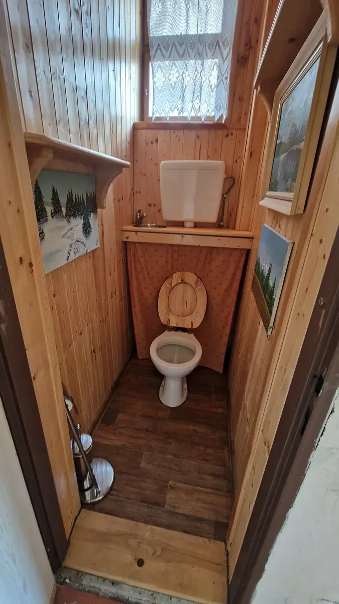 Byt je vytápěn kombinací krbových kamen a elektrických přímotopů a je zařízen kuchyňskou linkou se základními spotřebiči.