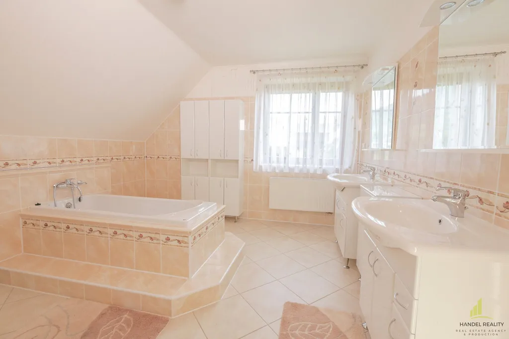 Praktická dispozice domu nabízí pohodlí a prostor pro celou rodinu. Po vstupu do domu se ocitnete v předsíni, ze které vedou dveře do chodby a druhé dveře do prostorné šatny 11 m². Po vstupu do chodby jsou schody do prvního patra, dveře do obývacího pokoje, samostatné WC a technická místnost s umyvadlem. V této části domu se rovněž nachází vstup do prostorného obývacího pokoje s krbovými kamny a kuchyně o rozloze 44 m². Z kuchyně je přímý vstup na venkovní terasu. První patro domu tvoří 3 prostorné ložnice o rozloze 27 m², 24 m² a 21 m², ze dvou pokojů je přístup na balkón 6,4 m². Dále se zde nachází koupelna 16 m² se sprchou, vanou a toaletou.