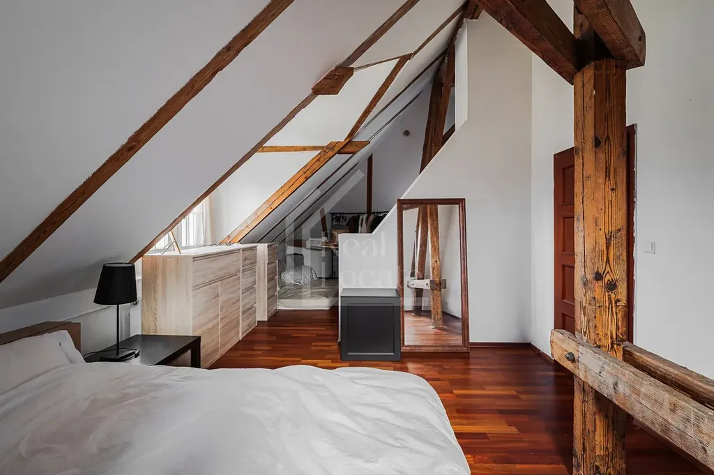 Nabízíme k pronájmu nadstandartní a světlý byt 2kk + balkon + galerie, ve vilové zástavbě v ulici Hradešínská, Praha 10 - Vinohrady. Tento jedinečný, zařízený byt cca (114m² + 4m²) se nachází v třetím patře vilového domu (celkem 3 byty + kancelářské prostory) činžovního domu se společnou krásnou zahradou a 1 parkovacím místem. Byt se skládá s prostorného obývacího pokoje s plně zařízeným kuchyňským koutem a vstupem na balkón. Dále je v bytě atypicky řešená ložnice pro až 4 osoby a také galerie nad obývacím pokojem, která lze využít jako pracovna nebo jako pokoj pro návštěvy. Koupelna s rohovou vanou a samostatná toaleta je přístupná přímo z navazující předsíně. Byt je klimatizovaný a má krásné dřevěné podlahy. Velkou výhodou tohoto bytu je možnost využívat společnou zahradu a vyhrazené parkovací stání. Reprezentativní bydlení v centru města jen pár minut od veškerého občanského vyžití.