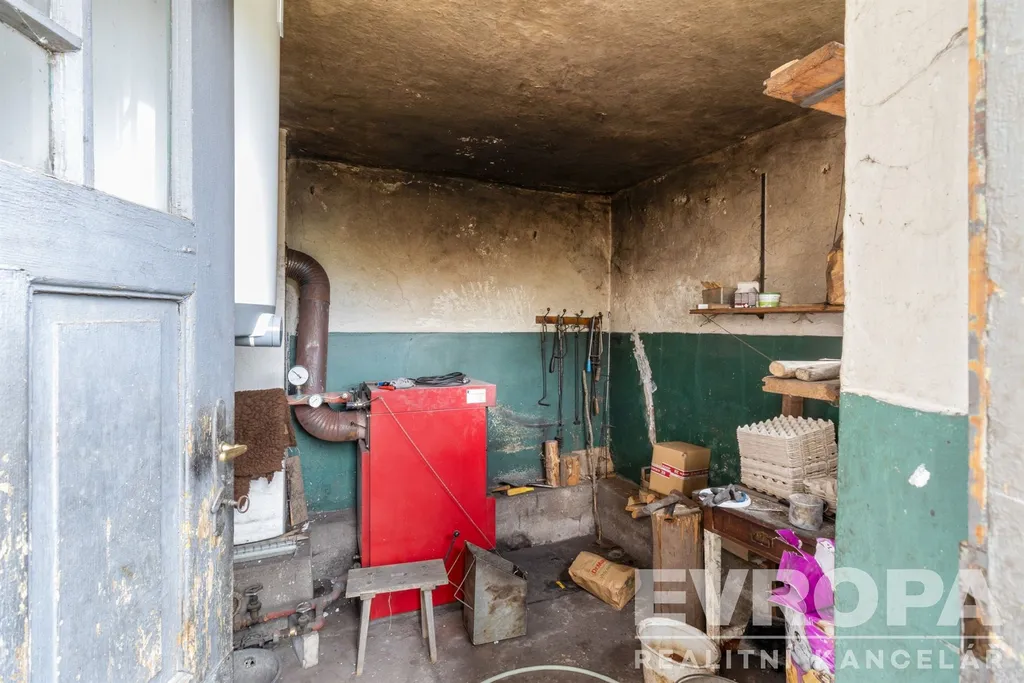 Na zadní část domu navazují hospodářské stavby, dílna a skladové prostory rozmístěné kolem dlažděného dvora. Přístup je možný i z polní cesty, kde se nachází samostatná zděná garáž.