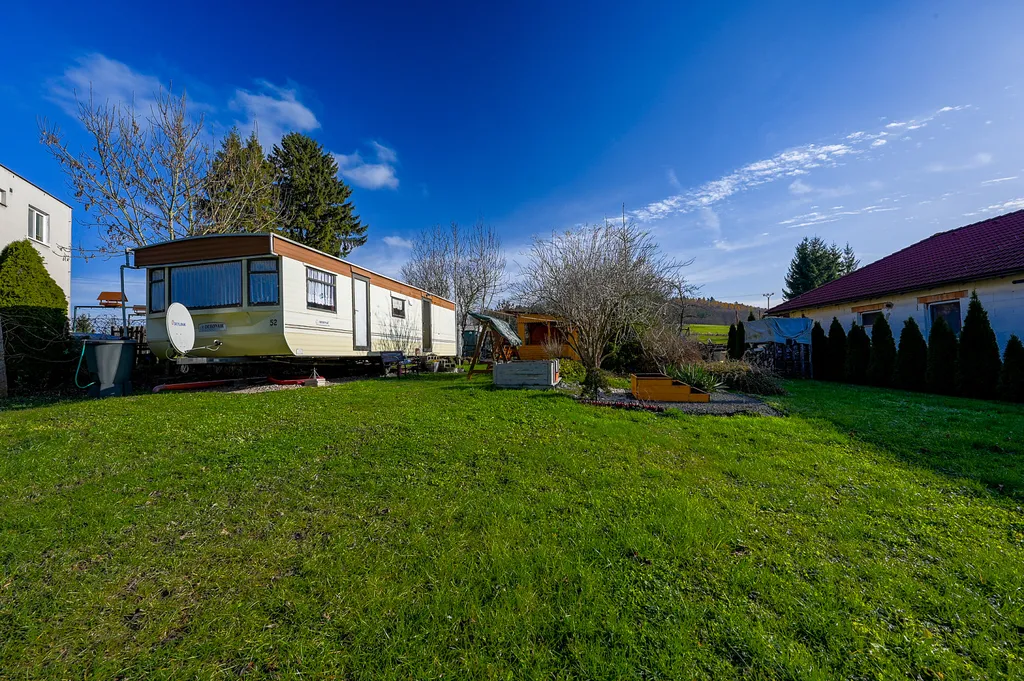 Nabízím Vám k prodeji pozemek obdélníkového tvaru v obci Lukavec u Hořic. Součástí prodeje je také mobilní dům, pergola a dvougaráž, tedy všechny stavby a prvky umístěné na pozemku.