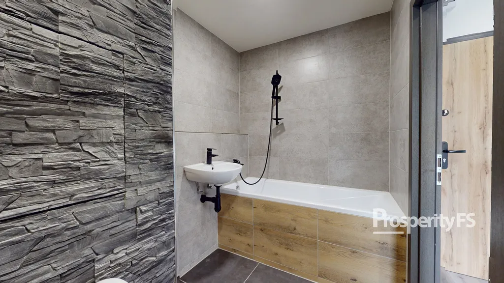 Byt o velikosti 41 m² se nachází v 8. podlaží panelového domu se dvěma výtahy. Má plastová okna a kuchyňskou linku s indukční varnou deskou a elektrickou troubou. Koupelna je vybavena vanou, umyvadlem, toaletou a je zde připravené místo na pračku. Vytápění i ohřev vody jsou zajištěny dálkově.