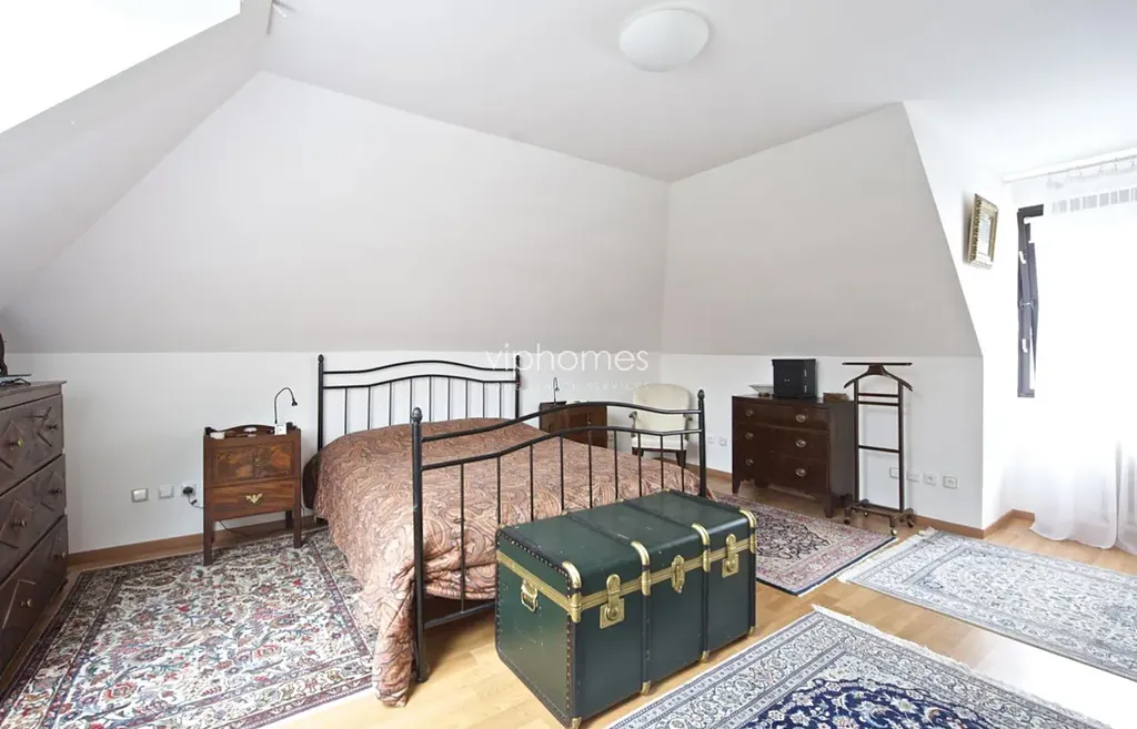 Kuchyně je vybavena všemi potřebnými spotřebiči (Bosch), v domě je alarm, SAT, krb v obývacím pokoji, vestavěné skříně, vinný sklep, přístřešek pro zahradnické náčiní. K dispozici je garáž a 2 parkovací místa na pozemku. Oblast je ceněná pro zeleň a jezero používané pro bruslení a hokej, výborné sportovní možnosti. Snadná dostupnost do Prahy, (metro Chodov), centrum města 10 minut autem, v rychlém dosahu mezinárodních škol EISP, PBS, a PORG. Dům je v tiché ulici s výhledem a krásnou dekorativní zahradou.