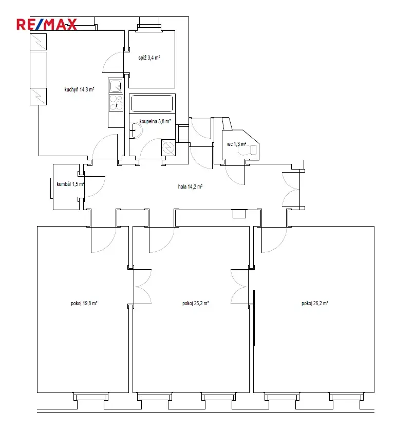 Ohřev vody zajištěn bojlerem, vytápění elektrickými konvektory. K bytu náleží i velká sklepní kóje.