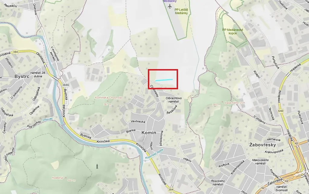 V kú Komín na LV 2310 se jedná o tento pozemek: