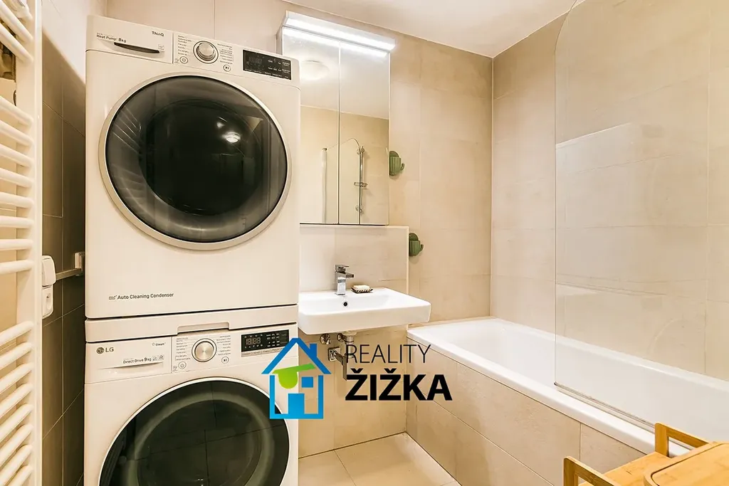 V ceně nemovitosti: kuchyňská linka včetně vestavěných elektrospotřebičů (myčka, vestavěná lednice s mrazákem, elektrická trouba, indukční varná deska), dále nábytek a vybavení.