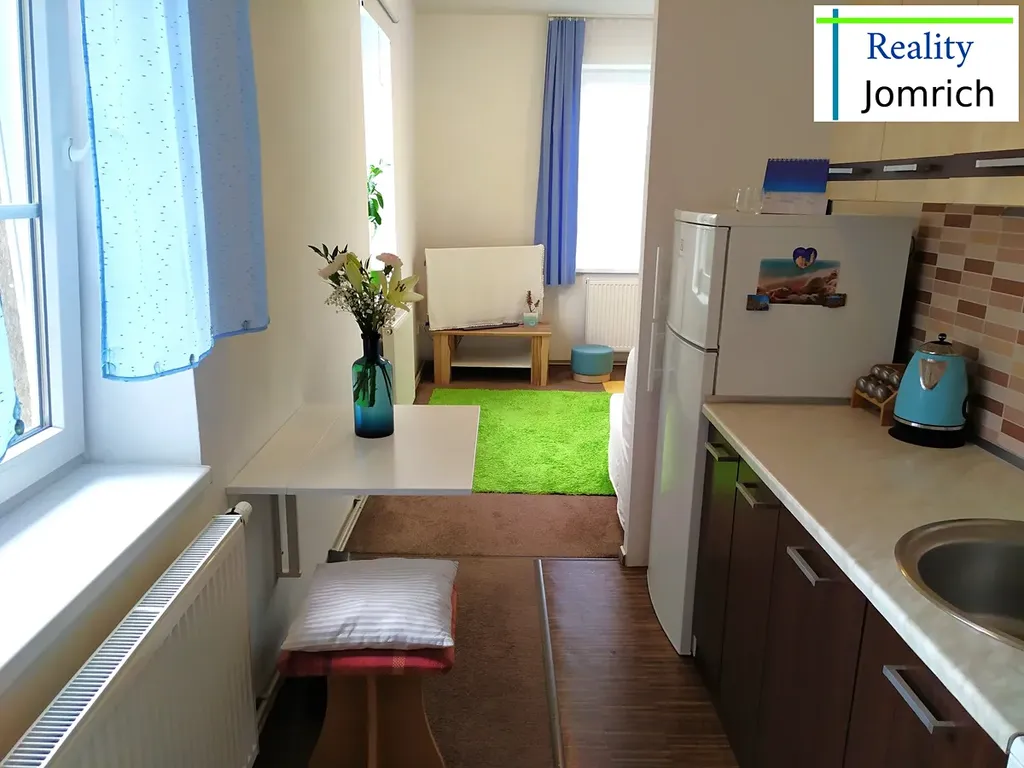 Byt je umístěn v 1.patře domu bez výtahu, má plochu ca 30 m2, a je v něm k dispozici pouze pěkná kuchyňská linka včetně spotřebičů, chladnička, pračka, komora a koupelna se sprchovým koutem.