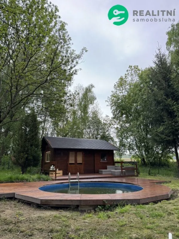 Chata č.1 - 24m2 - Nová - V této chatě není přivedená voda, jelikož je jako jediná určená spíše na spaní a relaxaci, ale vše je již k chatě přivedeno, možnost si vodu do chaty zavést. Elektřina v chatě je. U této chaty se nachází rozsáhlá dřevěná terasa a také bazén s filtrací, který je celý zapuštěný do země a obložený dřevem, tak aby se daly kolem bazénu položit např. lehátka,