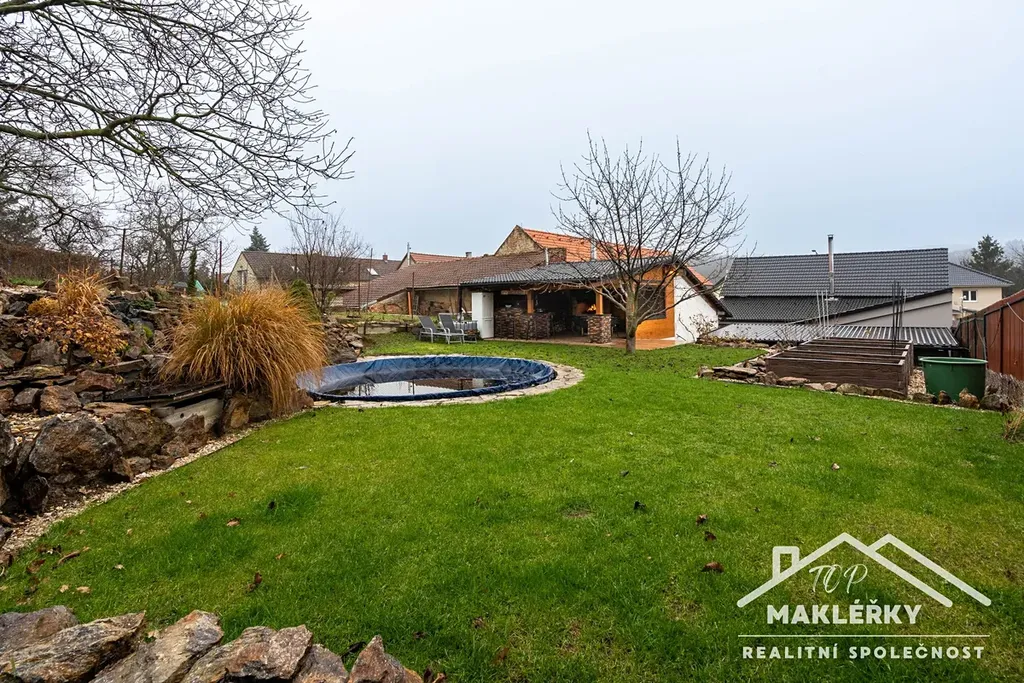 Co tedy po koupi můžete očekávat: plášť domu je kompletně odizolován 10cm vrstvou polystyrenu, nová fasáda, rozvody vody, kanalizace i rozvody topení. Elektřina vedená v mědi. Plastová okna s izolačním dvojsklem. Vytápění domu zajištují krbová kamna s výměníkem, kdo raději volí pohodlnější cestu, zatopí elektrickým kotlem. Na podlahách v celém domě dlažba. Na střeše betonová taška KM Beta. Voda přivedena z obecního vodovodu, odpadní voda svedena do obecní tlakové kanalizace. Na dvoře kvalitní, velkoformátová dlažba Best. Ve sklepě úpravna vody od společnosti Ivar cs. Půda je vyklizena a v části přístavby zateplena vatou a extrudovaným polystyrenem. Vedlejší stavby - kůlna a dřevník na 40 kubíků dřeva.