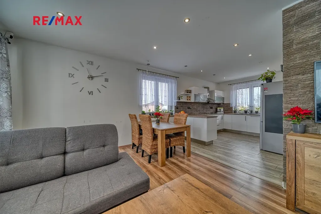 Nabízíme k prodeji moderní rodinný dům typu bungalov s užitnou plochou 108 m². Dům leží v klidné části obce Křečhoř, na prostorném pozemku o výměře 860 m² .