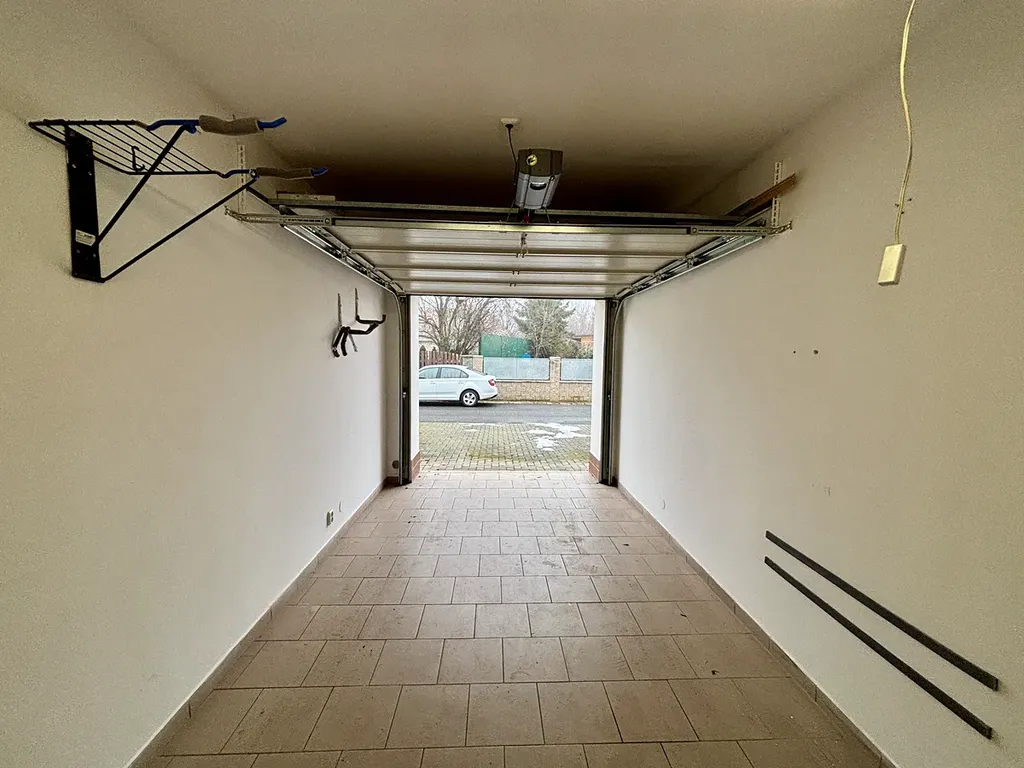 Součástí prodeje je také vlastní zděná garáž o velikosti 14,8m² s garážovými vraty na el.pohon, která zajistí bezpečné parkování a úložný prostor. K bytu také patří jedno venkovní parkovací stání. K bytu náleží sdílená zahrada o výměře 402m2, která je skvělým místem pro dětské hry nebo odpočinek.