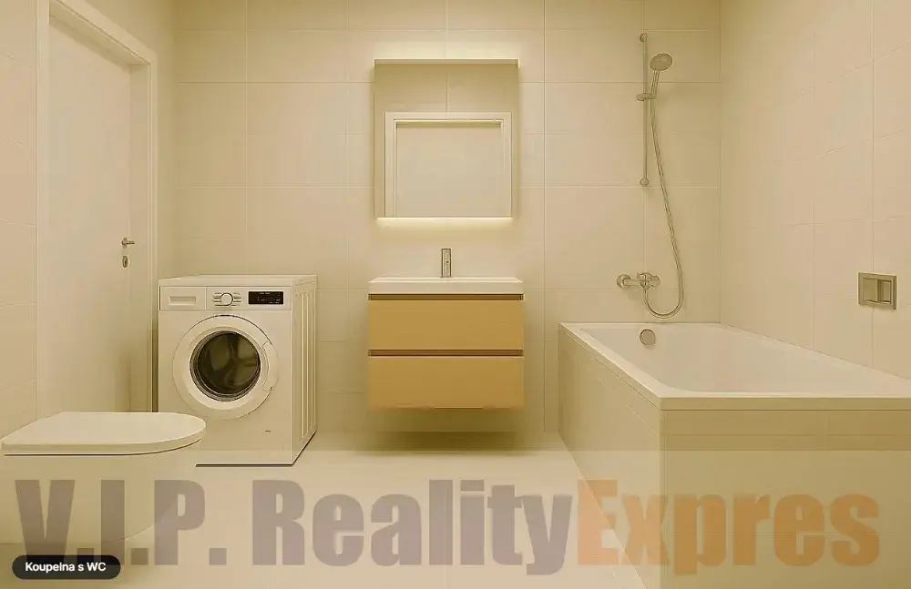 Dispozice: obývací pokoj s kuchyňským koutem (27,8 m²), ložnice (15 m²), koupelna s vanou a WC (4,7 m²), předsíň (9,6 m²), terasa (46,7 m²). K bytu náleží sklep (2,6 m²), který je již zahrnut v ceně. Budoucí majitel má možnost dokoupit 1 garážové stání v podzemní garáži za 750 000 Kč. Všechna okna a terasové dveře jsou vybavena venkovními žaluziemi, které zajišťují soukromí i komfort v letních měsících. V bytě jsou také připraveny rozvody na klimatizaci, stačí pouze dokoupit a nainstalovat vlastní klimatizační jednotky.