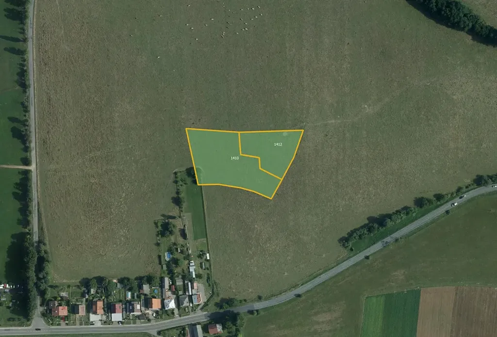 Celková výměra činí 7 455 m². Pozemky jsou vedeny jako trvalý travní porost. Přístup je zajištěn po parcele v obecním vlastnictví.