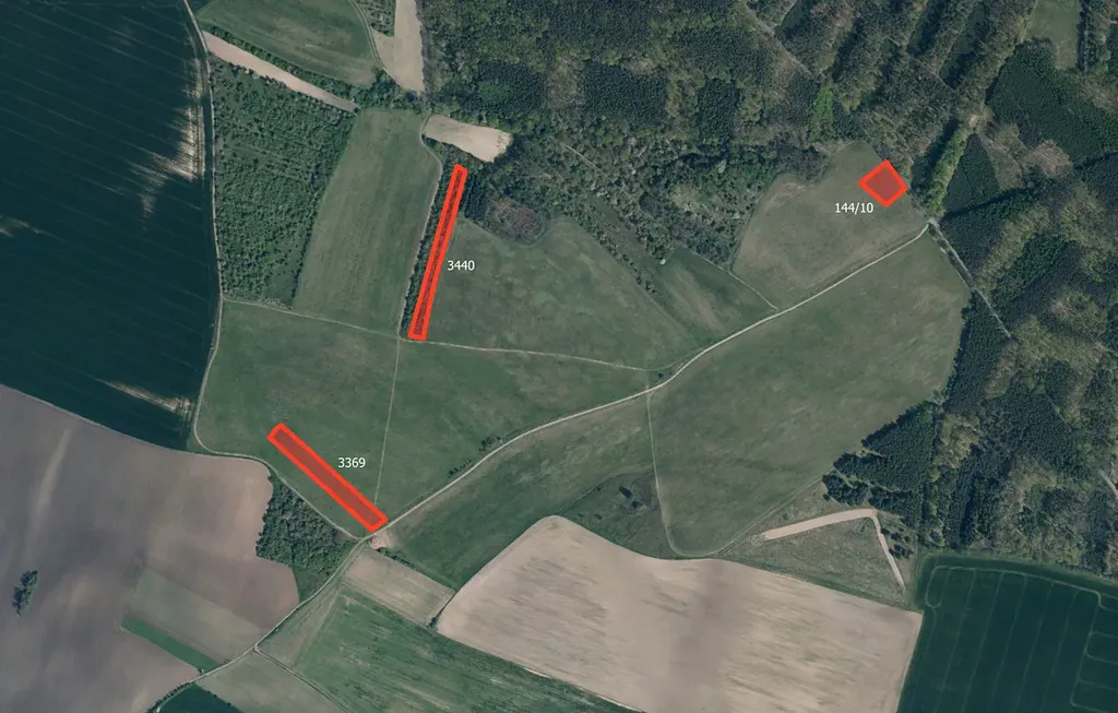 Celková výměra všech pozemků činí 20 161 m², k prodeji je ideální výměra 10 080 m².