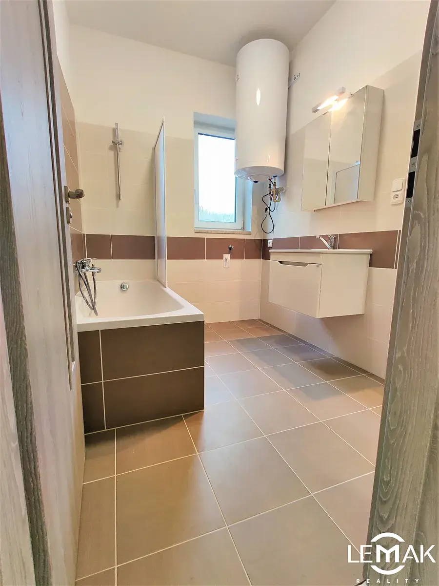 V zastoupení majitele nabízíme k dlouhodobému pronájmu byt o dispozici 3+kk a podlahové ploše 64 m² v novostavbě BD v obci Těšetice. Samotný byt sestává ze vstupní chodby, 2 neprůchozích pokojů, obývacího pokoje s kuchyňským koutem, koupelny s vanou a samostatné toalety. Vytápění bytu zajišťuje elektrokotel napojený na teplovodní podlahové vytápění. Vstupní dveře do bytu jsou bezpečnostní a protipožární, podlahy kryje PVC, v koupelně a na toaletě keramická dlažba. K bytu náleží uzamykatelná kóje o výměře 5,5 m², parkovací stání pro automobil, společná terasa se zahrádkou a další společné prostory. Vytápění bytu zajišťuje elektrokotel, ohřev vody je el. bojlerem. Jsou zde nízké náklady na bydlení. Obec Těšetice se nachází 7 km západně od Olomouce, je zde veškerá občanská vybavenost jako škola, školka, pošta, lékař, zubař, obchod atd. Výborná dopravní dostupnost do Olomouce. K nastěhování od 01. ledna 2026.