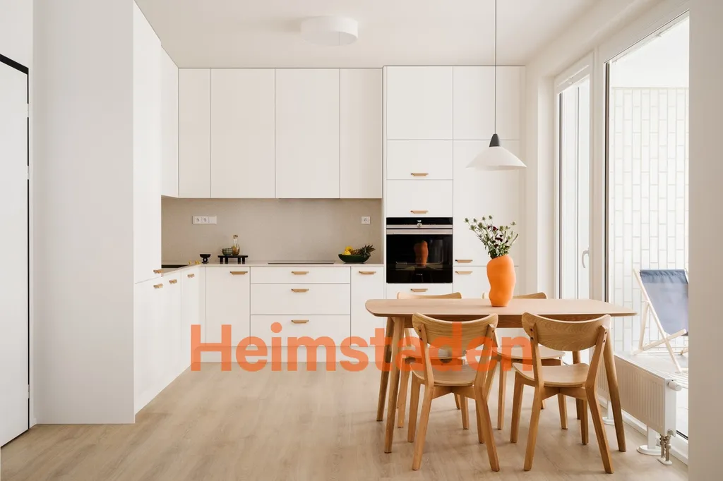 Byt zahrnuje světlý obývací pokoj propojený s moderní kuchyní vybavenou vestavěnými spotřebiči, dvě samostatné ložnice, praktickou komoru s pračkou, předsíň, koupelnu a samostatným WC. Všechny místnosti jsou neprůchozí, což zajišťuje maximální soukromí a flexibilitu využití prostoru. Interiér je kompletně zařízen nábytkem včetně kvalitních postelí, gauče, jídelního stolu, vestavěných skříní a plně vybavené kuchyňské linky. K relaxaci láká prostorný slunný balkón orientovaný do tichého vnitrobloku, který zajišťuje příjemné soukromí. Součástí bytu je také sklep a v ceně nájmu je garážové stání v domě. Venkovní rolety v celém bytě zvyšují komfort i bezpečí.