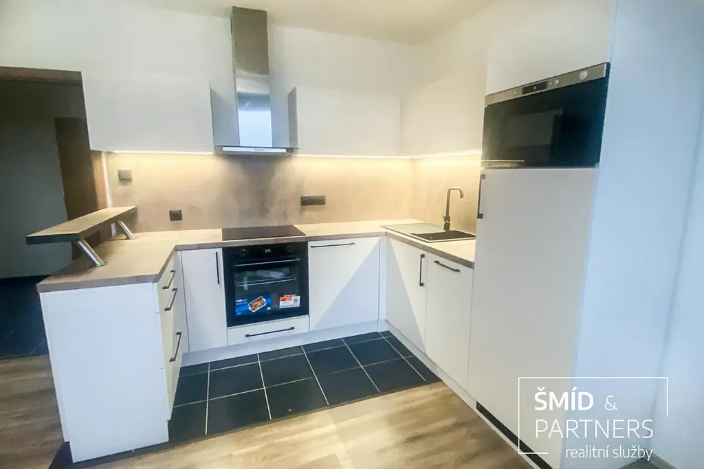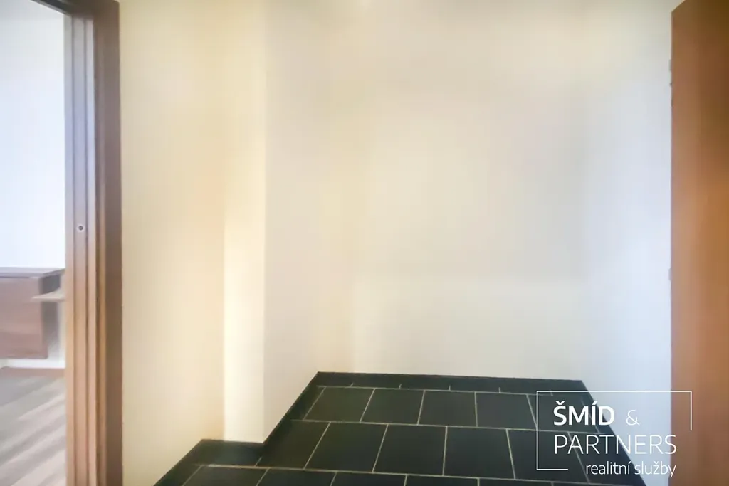 Dispozičně je byt rozdělen na obývací pokoj s kuchyňským koutem a malou ložnici. V obývacím pokoji je zcela nově instalována kuchyňská linka vybavená sklokeramickou deskou, digestoří, myčkou, mikrovlnou troubou, ledničkou a pračkou. Vstupní chodba je dostatečně prostorná na umístění šatní skříně. Koupelna s WC je vybavena pohodlným sprchovým koutem, umyvadlem se zrcadlem.