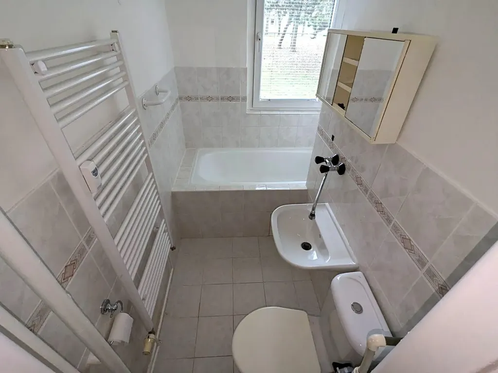 V kuchyni je kuchyňská linka s plynovým sporákem. V koupelně je vana, umyvadlo a WC. K dispozici je pračka. V obývacím pokoji jsou instalovány posuvné dveře. Místnosti jsou světlé a vzdušné.