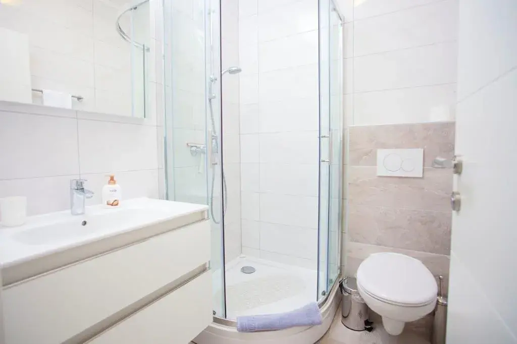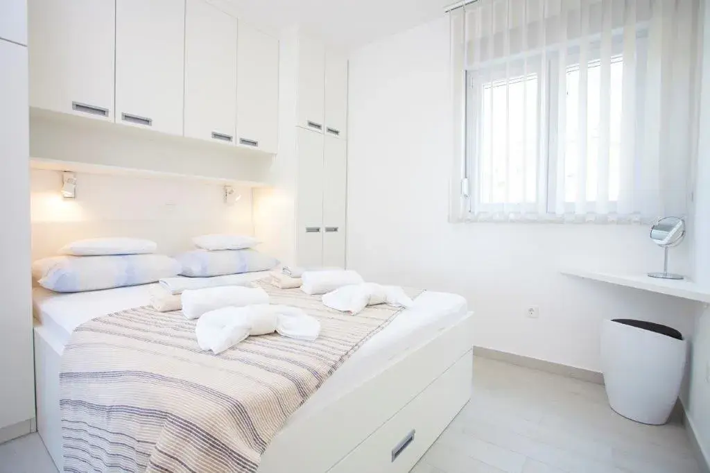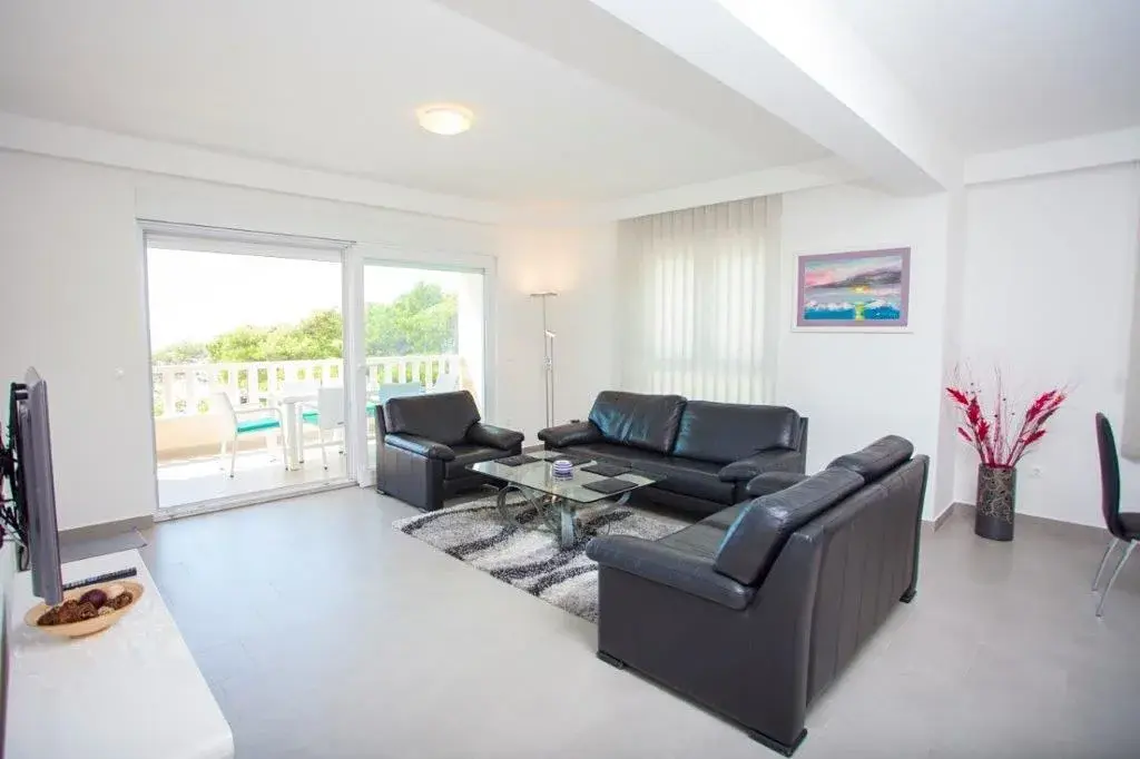 Apartmán o ploše 77,55 m2 se nachází ve druhém podlaží nově postavené čtyřpodlažní budovy s výtahem a sestává z technické místnosti, dvou ložnic, dvou koupelen, obývacího pokoje s kuchyní a jídelnou s přístupem na prostornou terasu o rozloze 12,50 m2 orientovanou na jih s krásným výhledem na moře a ostrovy. Apartmán je kompletně zařízený kvalitním nábytkem, kamennou a keramickou dlažbou, plně vybavenými koupelnami, klimatizací, podlahovým vytápěním v celém apartmánu, má bezpečnostní vstupní dveře, nerezové zábradlí, satelitní TV, internetové připojení, Budova má kvalitní tepelnou a zvukovou izolaci, Při stavbě a interiérovém provedení byly použity nejkvalitnější materiály. K apartmánu náleží jedno venkovní parkovací stání.