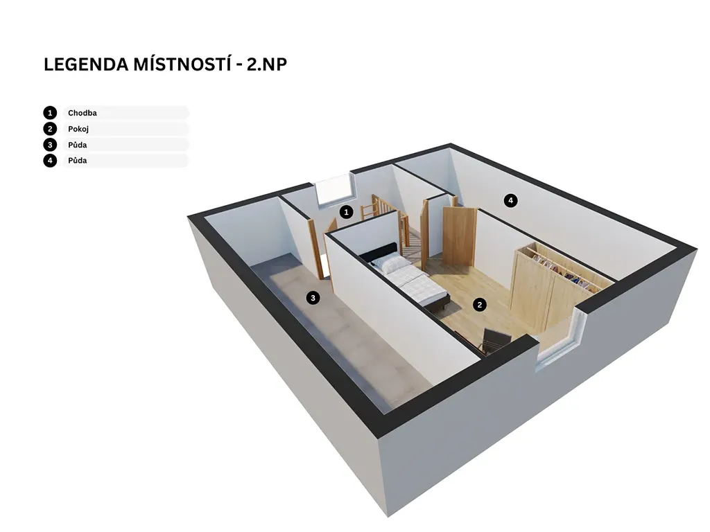 ✔ Půda členěná na dvě části po 10 m² nabízí skvělé možnosti pro úložný prostor nebo kreativní využití podle vašich potřeb.