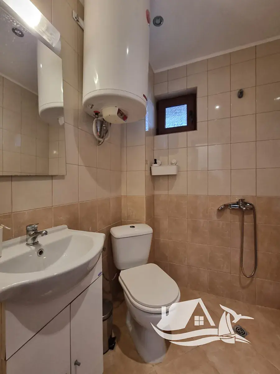 V přízemí se rozprostírá prostorný obývací pokoj s kuchyňským koutem, jehož atmosféra vybízí k setkání u stolu, ranní kávě i odpočinku po dni stráveném u moře. V horním patře se nacházejí dvě samostatné ložnice a dvě koupelny, díky nimž si každý člen domácnosti dopřeje soukromí. Dům disponuje balkony v přízemí i v patře, které otevírají výhled do zeleně a přinášejí příjemný prostor pro večerní posezení. Součástí zahrady o velikosti 269 m² je také bazén, jenž v létě nahradí cestu k pláži a nabídne dokonalé soukromí. Dům se prodává kompletně vybavený, takže je připravený k okamžitému užívání.