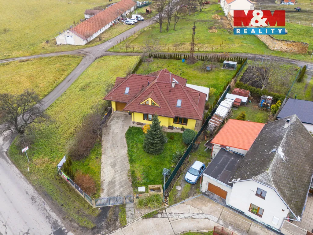 , Pozemek o velikosti 1132 m² poskytuje dostatek prostoru pro zahradní aktivity, relaxaci či vybudování bazénu. Dům je situován na okraji obce, což zajišťuje soukromí a klid. Tato nabídka představuje ideální příležitost pro ty, kteří hledají pohodlné bydlení v příjemném prostředí s výbornou dostupností do Prahy. Neváhejte nás kontaktovat pro více informací nebo prohlídku.