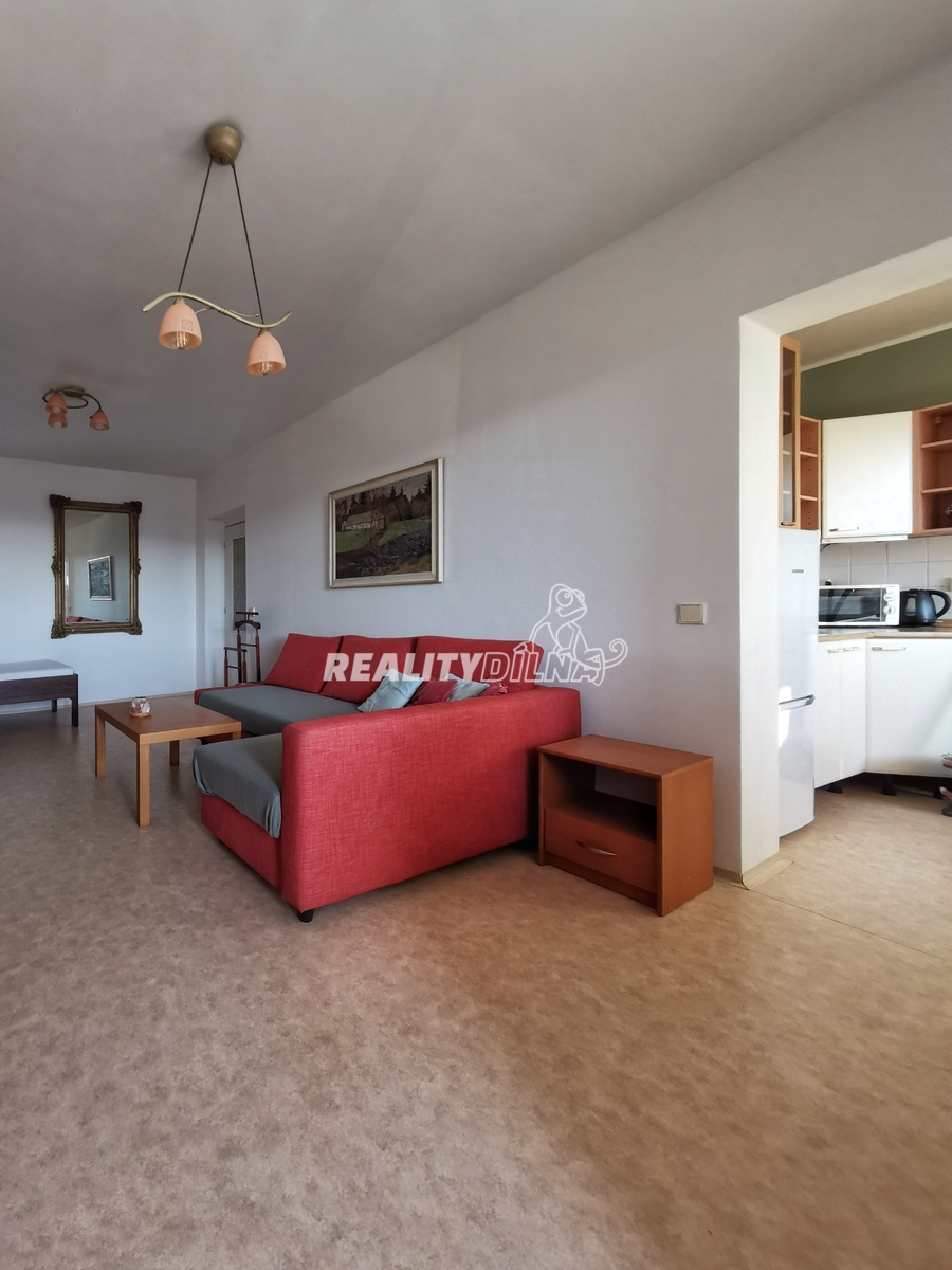 Nabízím vám částečně zařízený byt 1+1 s lodžií (39m + 6m) s okny na jihovýchod ve 4. patře domu z roku 2004.