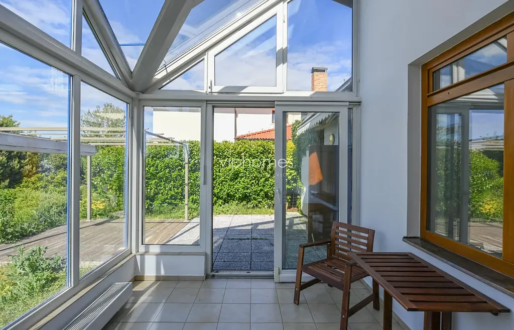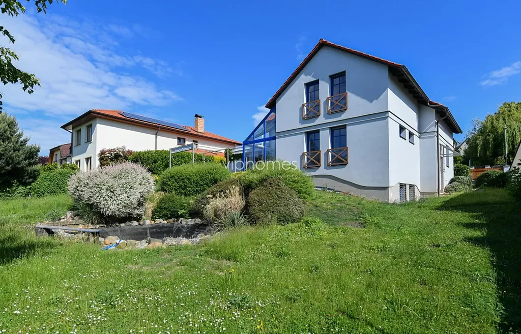 Dům vyniká kvalitním provedením a nabízí 5 ložnic a 3 koupelny. Společenskou část domu tvoří prosluněný obývací pokoj, jídelna, zimní zahrada s přístupem na terasu a zahradu, dále plně vybavená kuchyň se spíží, ložnice pro hosty/pracovna, koupelna se sprchovým koutem a prostorná vstupní hala. V patře jsou tři ložnice, (jedna s výstupem na terasu), plně vybavená koupelna a vybavená šatna. Suterén s variabilním využitím nabízí dvě ložnice s koupelnou a toaletou, (samostatný zadní vstup), technické prostory a relaxační zázemí ze saunou a sprchou.