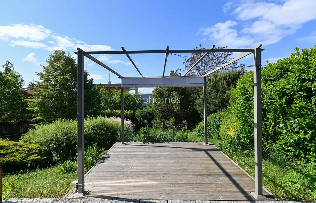 Samostatný, nově postavený rodinný dům se saunou a dekorativní zahradou s okrasným jezírkem, situovaný v klidné ulici v Praze 5 Jinonicích. Areál rezidenční čtvrti, v těsném sousedství německé školy, zaujme velkým množstvím zeleně, která postupně přechází v rozlehlý přírodní a rekreační park, ideální pro aktivní odpočinek. Širší nákupní i zábavní možnosti nabízí obchodní centrum Galerie Butovice. Přes klidnou lokalitu je dům výborně dopravně napojen na většinu pražských dopravních tepen.