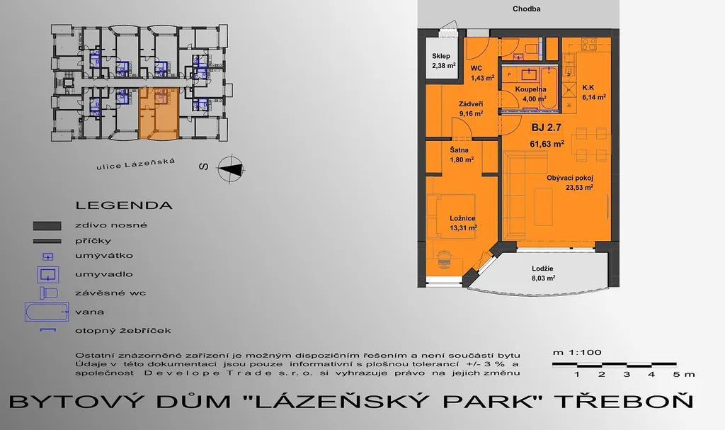 Bytový dům s 27 byty, nadstandartní vybavení, předokení hliníkové, žaluzie, trojitá vakuová okna, dubové plovoucí podlahy, podlahové elektrické topení v koupelně, v celém bytě je rozveden internet, je možno si zvolit poskytovatele. na střeše je FW k ohřevu teplé vody. O dům se stará a uklízí firma. Nábytek je kvalitní, včetně značkové kuchyně a spotřebičů. Předsíň má vestavěné skříně, stejně tak i ložnice. Vchodové dveře do bytu jsou od firmy NEXT, protipožární, protiprachové. Vnitřní dveře též dubové SAPELI.
