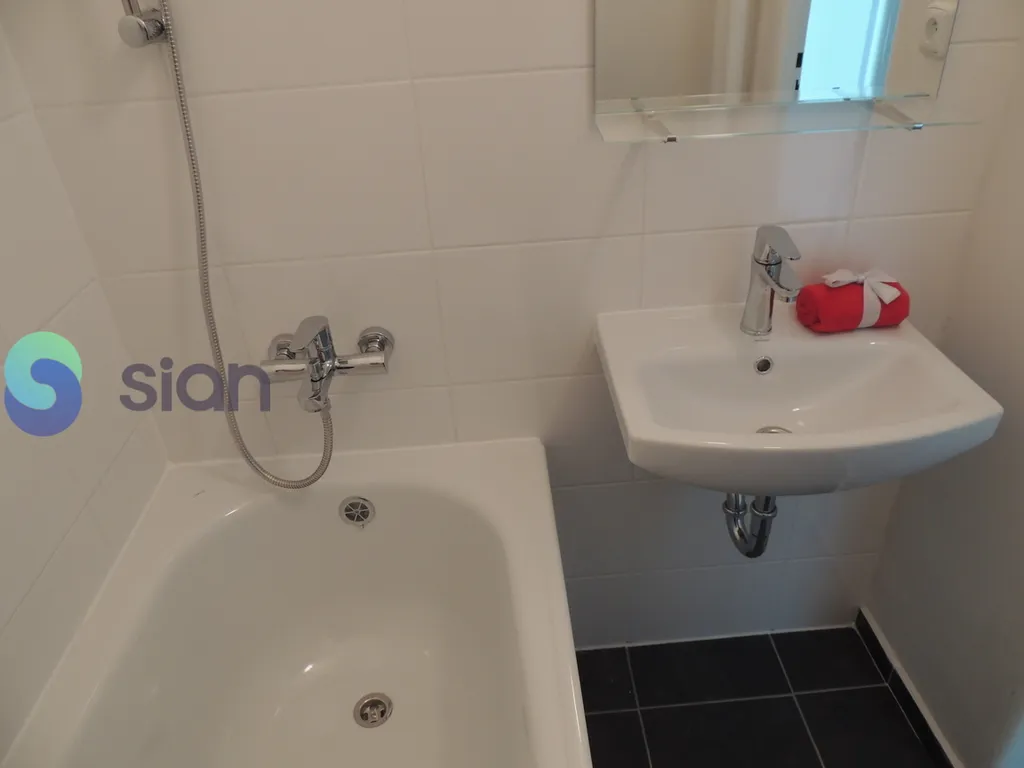 Byt má vyzděné jádro, podlahy, rozvody, omítky, interiérové dveře. Koupelna s vanou a umyvadlem, toaleta je součástí koupelny oddělena přepážkou.
