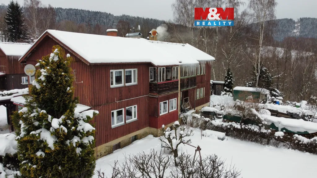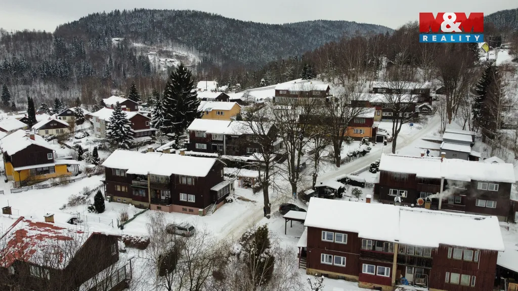 Nabízíme k prodeji rodinný dům se dvěma byty a pozemky o celkové výměře 476 m2 v Desné v Jizerských horách. Nemovitost je tzv. finský domek a je součástí několika stejných staveb na krásném klidném místě s výhledem v místní části Desná I. Celý objekt je podsklepený, v přízemí se nachází bytová jednotka 2+1 s pracovnou a zimní zahradou. V 1. patře je téměř identický byt 2+1 s balkonem. Obě bytové jednotky mají samostatný vstup. Na udržované zahradě stojí přístřešek pro automobil a sklad na nářadí. Dům je vhodný k trvalému bydlení i rekreaci díky mnoha ski areálům v těsné blízkosti, může ale sloužit i jako investice k pronajímání.