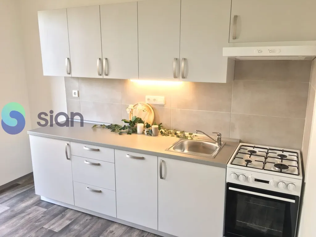 Kuchyňská linka je opatřena plynovým sporákem a elektrickou troubou s možností připojení myčky.