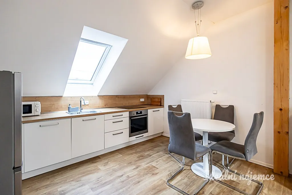 K dlouhodobému podnájmu nabízíme světlý byt o dispozici 2+kk v klidné lokalitě Praha-Čakovice. Byt o celkové výměře 50 m² se nachází v podkroví rodinného domu, který prošel kompletní rekonstrukcí a přestavbou. K bytu přísluší zastřešená terasa a společný sklep.