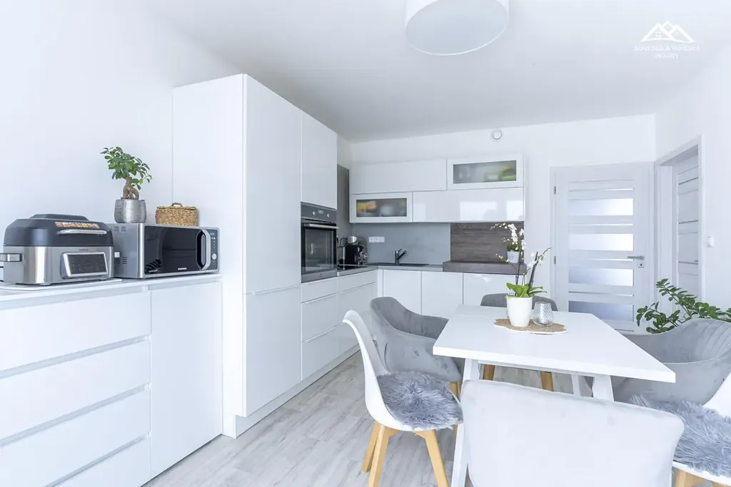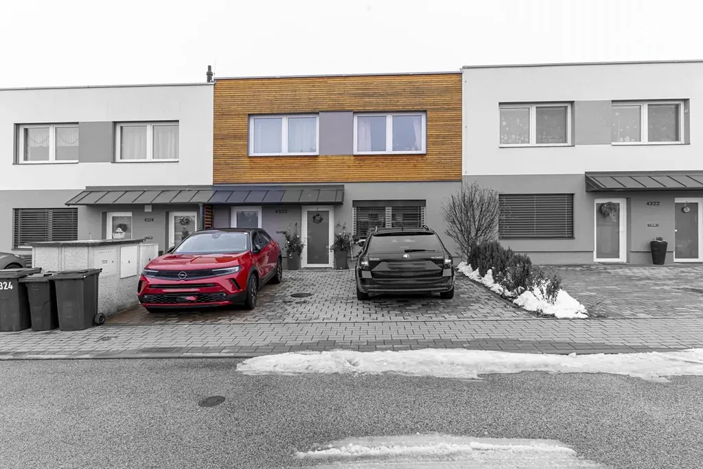 Byt se nachází v řadovém zatepleném rodinném domě v 1. patře, který byl dokončen v roce 2021 a který Vám zajistí bezstarostné bydlení v poklidné čtvrti.