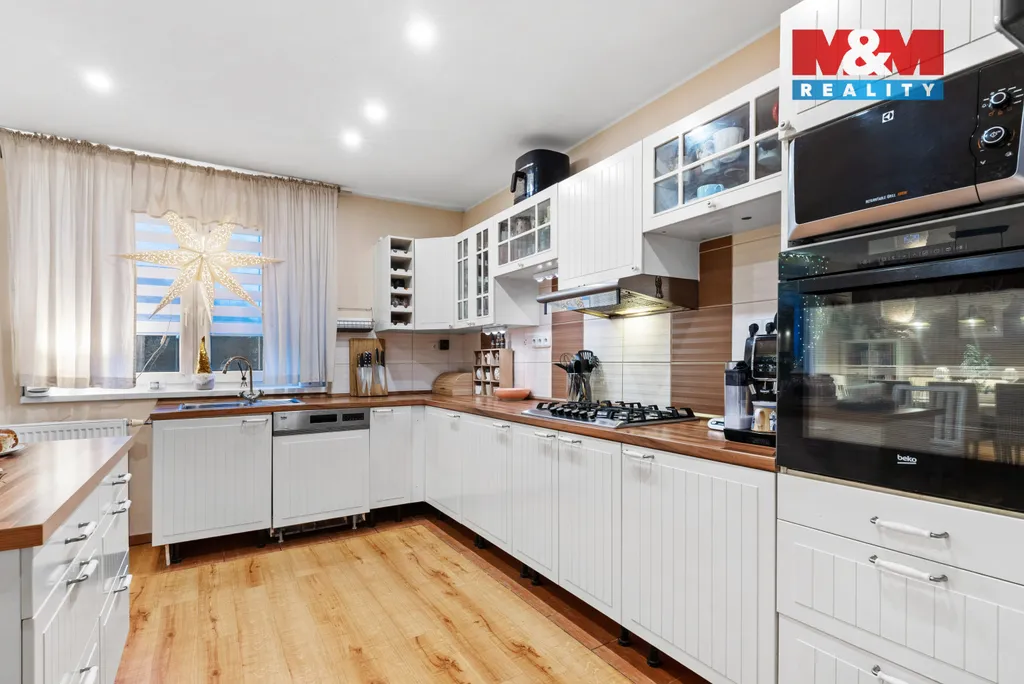 Hledáte dům, ve kterém se budete cítit dobře od první minuty? Na 138 m² najdete příjemný obývací pokoj s krbovkami, dvě koupelny, půdu, terasu, sklep, ale i infrasaunu - zkrátka vše, co v běžném provozu opravdu oceníte. Dům je navíc vybaven venkovními roletami, klimatizací, plynovým kotlem a zabezpečovacím systémem. Pozemek o 754 m² už jen dotváří pohodový pocit – je tu bazén na léto, zahradní a společenský přístřešek, nechybí ani garáž a parkovací stání. Vše potřebné máte v okolí pár minut od domu a doprava do Liberce je díky tramvajové zastávce více než pohodlná.