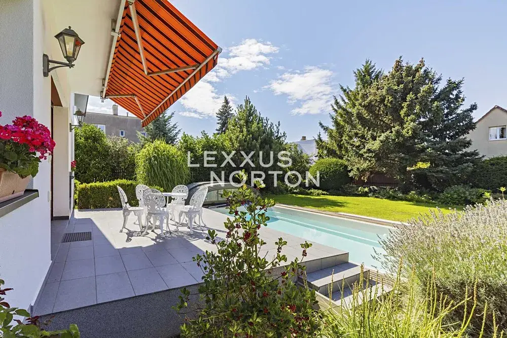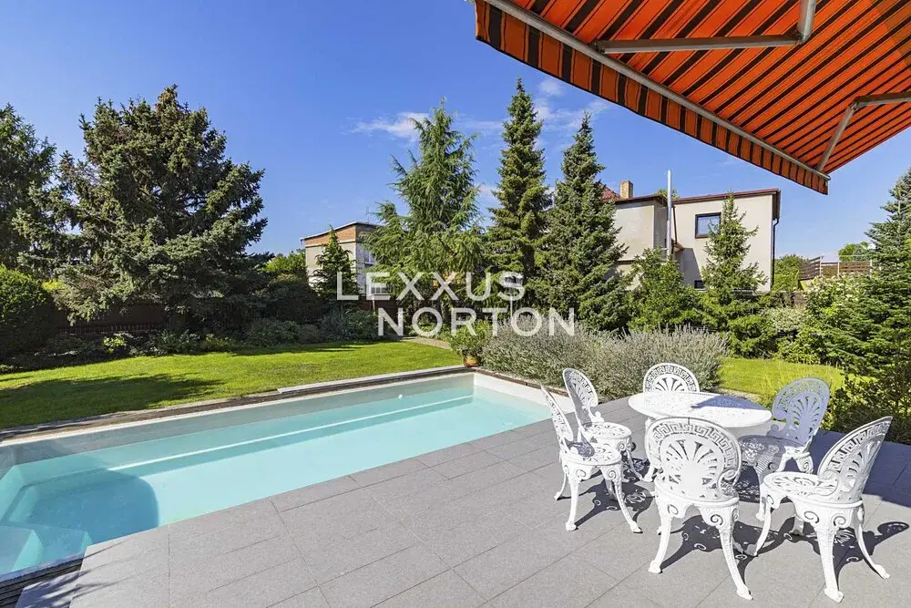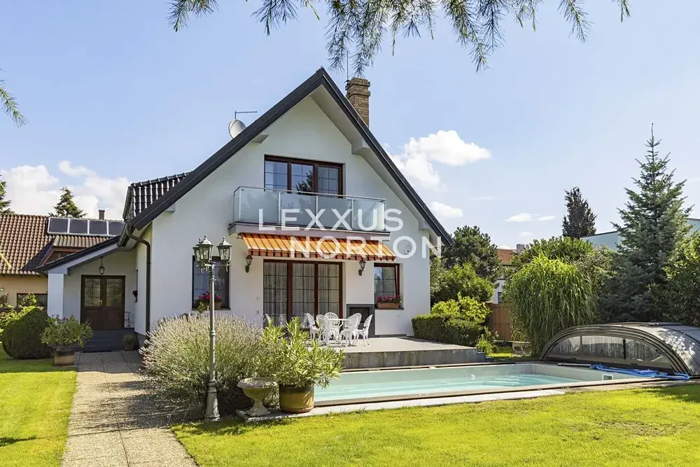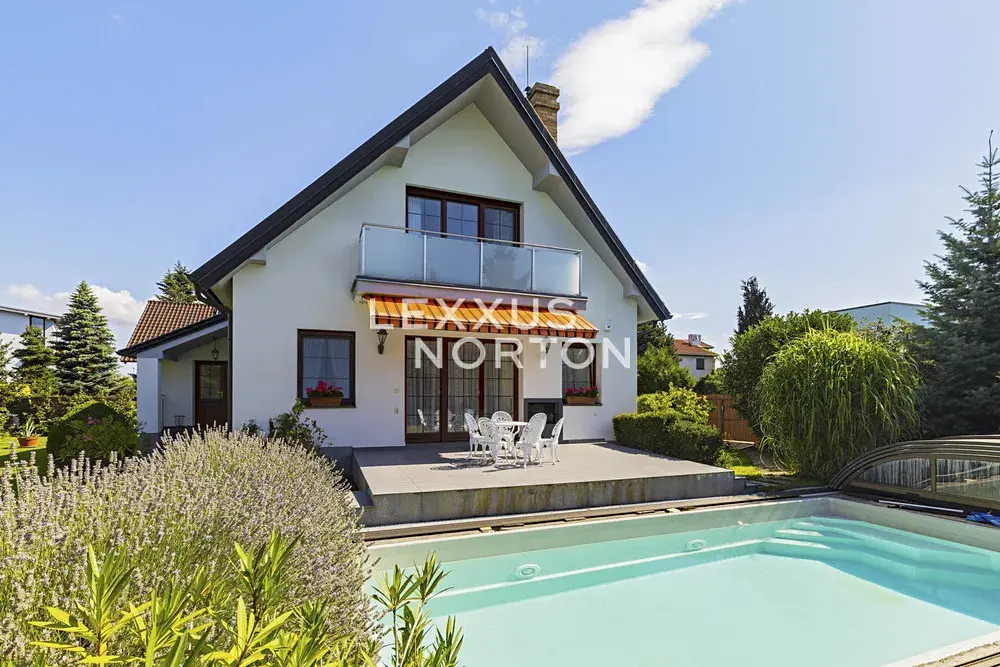 Rodinný dům 7+1 k pronájmu o celkové ploše 253 m2 má tři podlaží a nabízí komfortní rodinné bydlení. V 1. nadzemním podlaží se nachází vstupní předsíň, prostorný obývací pokoj s jídelní částí a přímým vstupem na terasu, samostatná kuchyně, dvě ložnice, koupelna, samostatná toaleta pro hosty a technická místnost. Z obývacího pokoje je možné vyjít přímo na terasu a do zahrady, kde se nachází bazén. Ve 2. nadzemním podlaží je umístěn druhý obývací pokoj využitelný také jako herna, který má vstup na balkon. Dále zde najdete dvě ložnice, pracovní kout, koupelnu a praktický úložný prostor. Suterén domu nabízí rozsáhlé úložné prostory, sprchu, toaletu a garáž. Dům je nízkonákladový a vybavený úsporným topným systémem se solárními kolektory. Součástí nemovitosti je vzrostlá, pečlivě udržovaná zahrada s ovocnými stromy, která poskytuje dostatek soukromí i příjemný prostor k relaxaci.