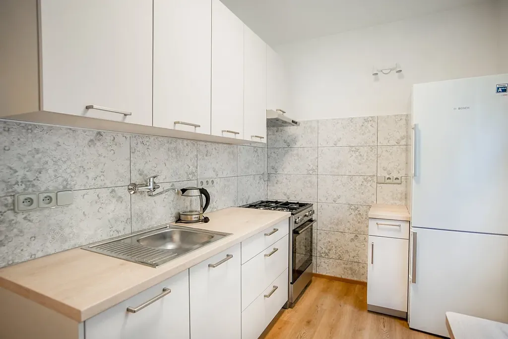 Byt má praktickou dispozici, moderní kuchyni, koupelnu s vanou, samostatné WC a balkón s výhledem do zeleně. Díky orientaci do vnitrobloku nabízí klidné a příjemné bydlení.