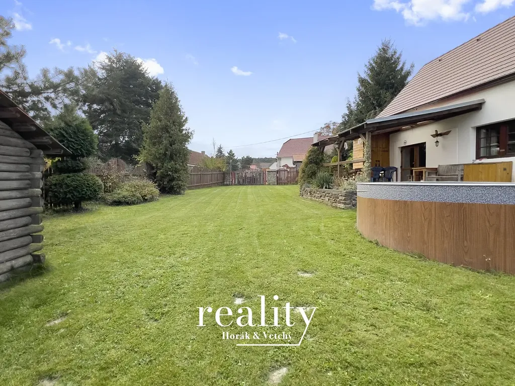 Pozemek o rozloze 895 m² je jedním slovem nádherný. Nabízí velkou travnatou plochu pro děti, přátelská setkání nebo letní pikniky. Nechybí prostorná pergola s posezením, bazén pro horké letní dny, ohniště pro večerní posezení pod hvězdami, dva úložné prostory/kůlny, množství okrasných stromů a keřů a také garáž. Celý prostor tak působí harmonicky a okamžitě navozuje pocit klidu a odpočinku.
