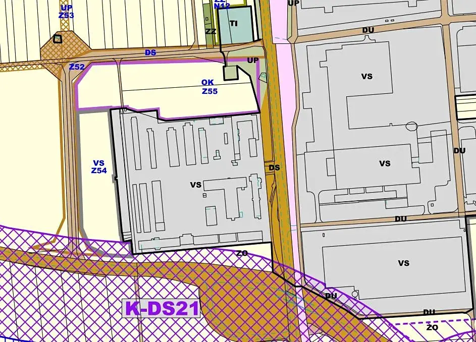 Pozemky se nachází dle územního plánu v plochách občanské vybavenosti komerční je možná výstavba skladovacích a logistických prostor a od ledna 2026 dojde k doplnění ÚP o výrobní prostory.