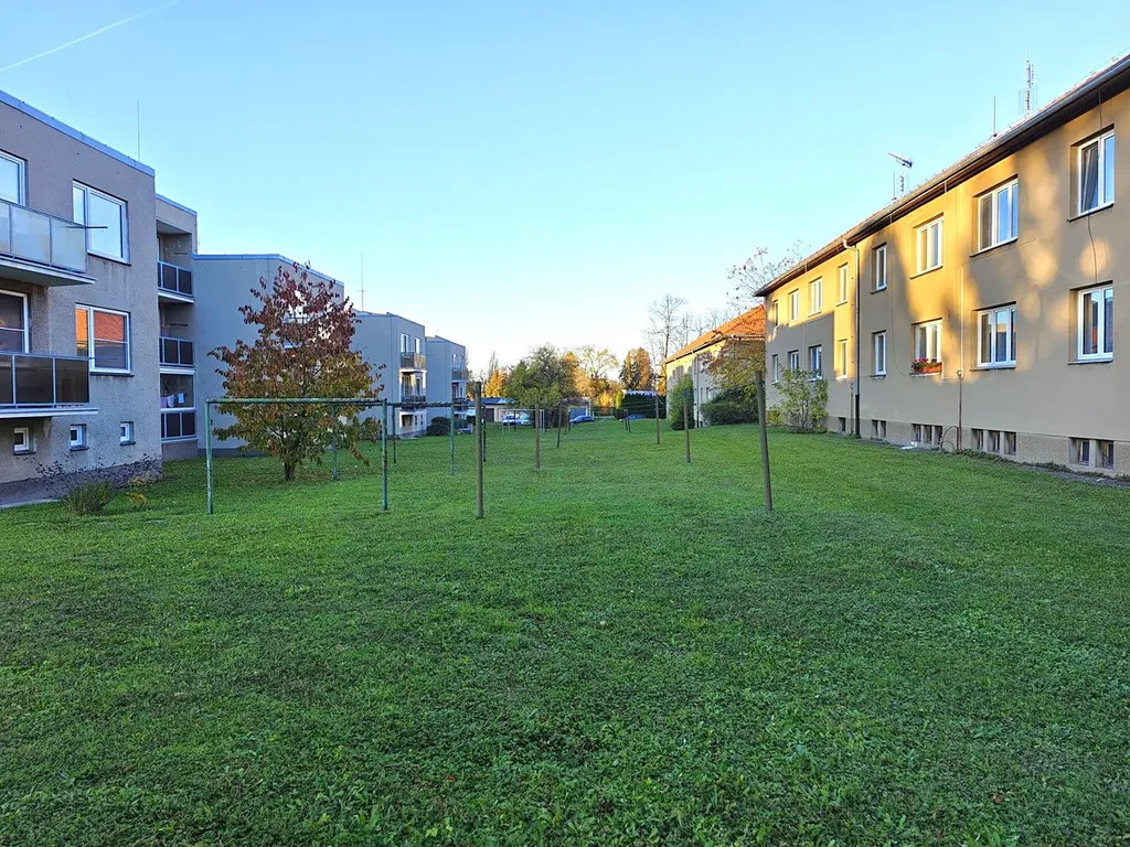 BYT 2+1 má plochu 64,65 m2 včetně dvou sklepů. Samotný byt má čistou podlahou plochu 51 m2 a nachází se v 1. NP. (zvýšené přízemí) cihlového domu z roku 1955. Patří k němu 2 sklepy v suterénu domu. Orientace oken je na východ a západ, do zeleně. V bytě probíhala v posledních dvaceti letech postupná rekonstrukce – nová dřevěná euro okna, nové podlahy a obklady, elektřina, dveře a zárubně. Byt má velmi příjemné dispozice, se kterými se dá v případě potřeby dále pracovat díky cihlové konstrukci celé stavby. Dům je klidný, s příjemnými sousedy (ve vchodě jsou jen 4 byty).
